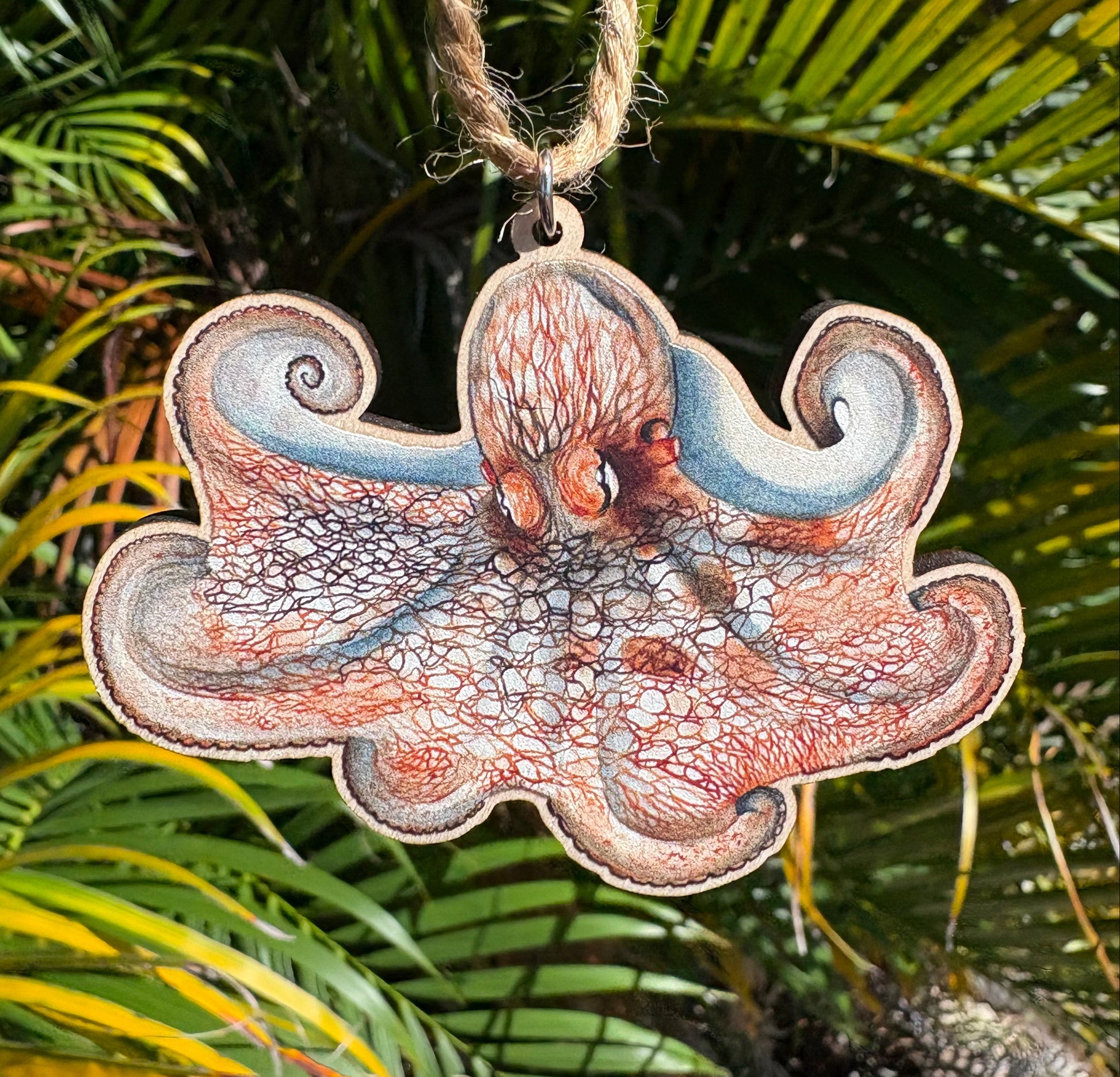 Caribbean Reef Octopus Wooden Eco-Friendly Holiday Ornament