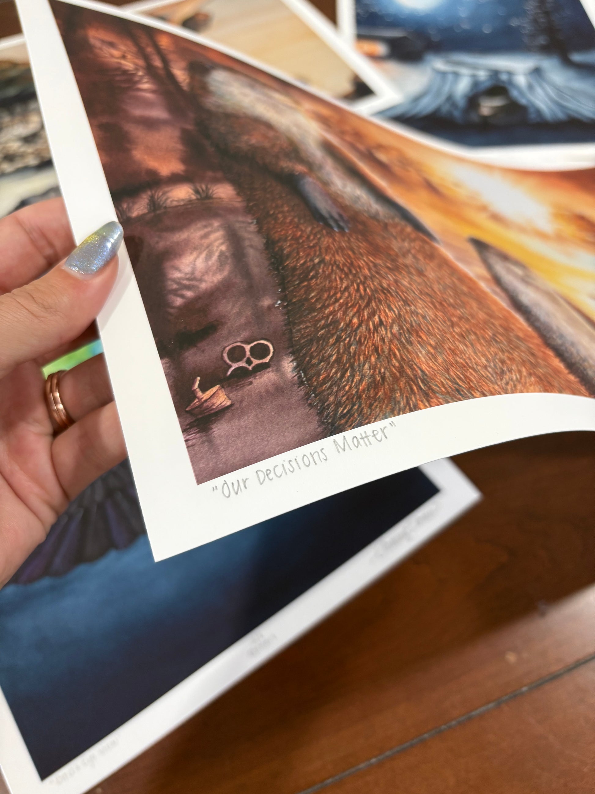 This archival giclee fine art print is of an original watercolor painting called "Our Decisions Matter" featuring two river otters enjoying the last of the sun's light in one of Florida's natural springs. However, these otters are surrounded by garbage due to single-use plastic regulations being pulled away by our state government. Right now, these laws have thankfully NOT been passed due to the tireless work of our community and wonderful non-profit organizations, like the Florida Springs Council and the Florida Springs Institute. A video that Samantha posted of the creation of this painting was showcased on the Florida Springs Council's monthly email and Instagram page!