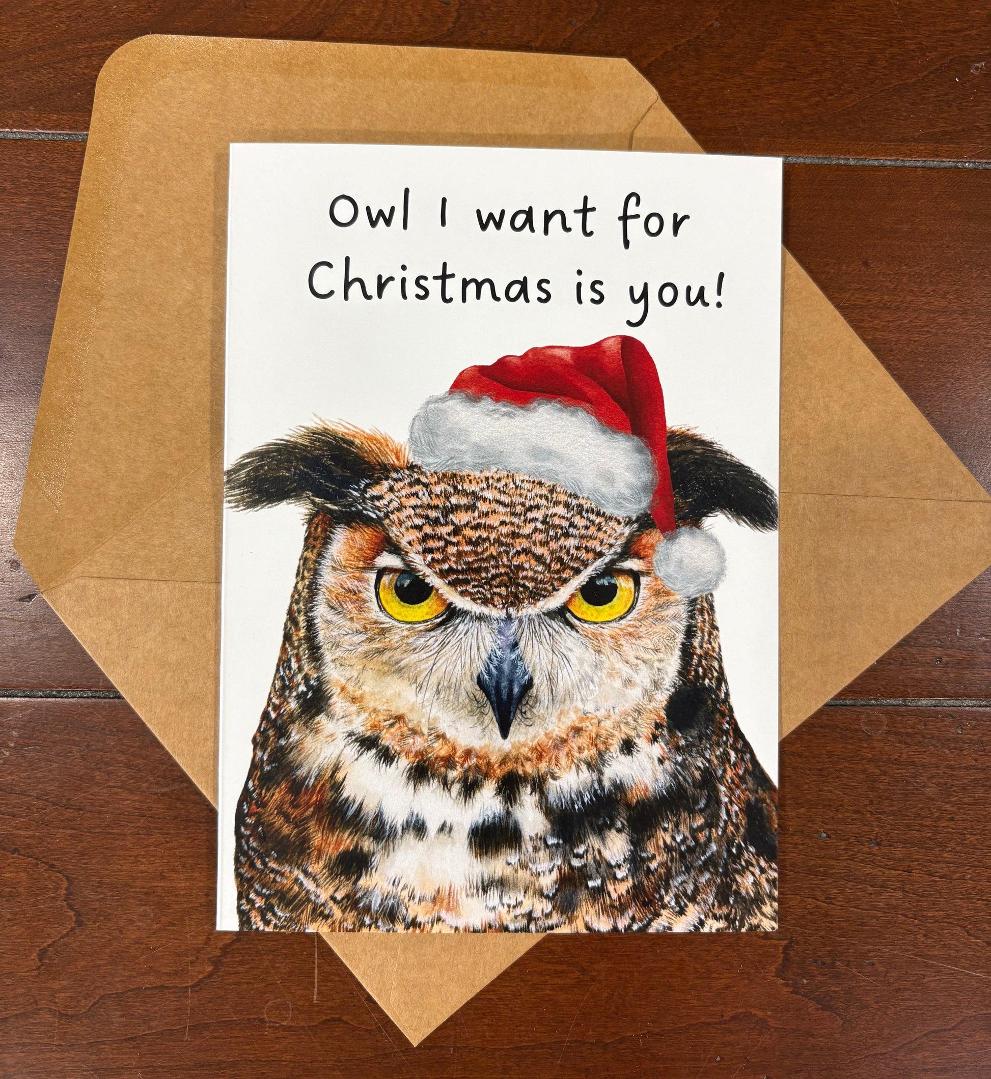 "Owl I want for Christmas is you!" Owl Greeting Card