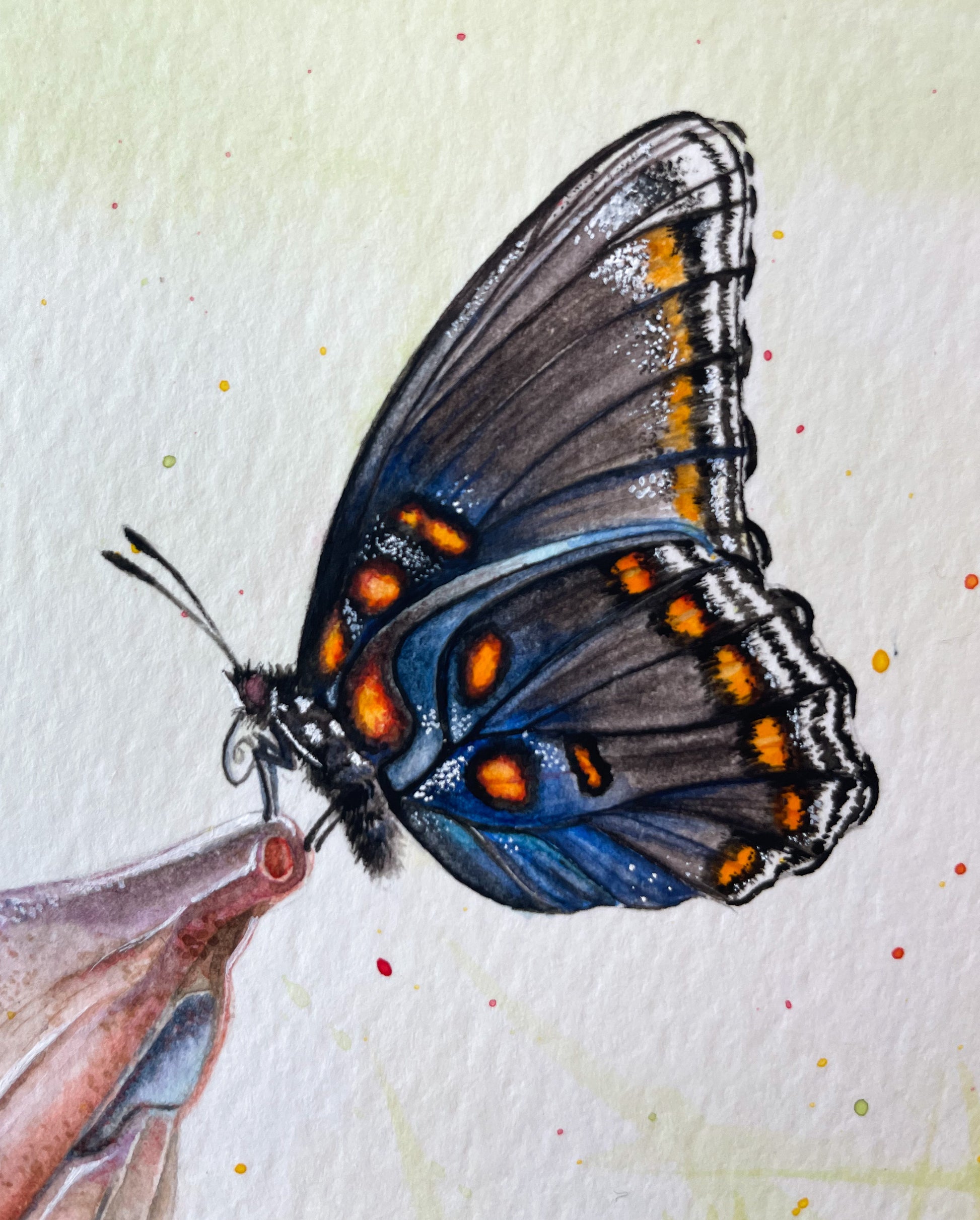 This fine art print is based off of an original watercolor painting of a Florida softshell turtle interacting with a red-spotted purple butterfly called "Little Moments".